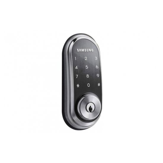 Samsung SHP-DS510 – это врезной замок без ручки с цилиндрическим ригелем из стали, совмещающий в себе «классический» замок с ключом и современный электронный «умный» замок со стильным дизайном. Доступ возможен с помощью ключа, карты, стикера или кода. Удобен при использовании в мини-отелях, аппарт-отелях и других арендных помещениях. Оснащен функцией «автозапирание двери», пожарным датчиком безопасности, сигналом несанкционированного доступа в помещение и индикацией разряда сменных батареек. Для обеспечения дополнительной степени защиты имеется функция произвольной защитной комбинации цифр перед вводом основного кода.