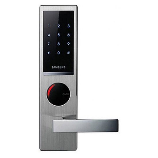 Samsung SHS-H635 FBS/EN (6020) - электронный дверной замок врезного типа с двумя надежными цилиндрическими задвижками, устанавливающийся на деревянные и металлические двери. Возможны 3 способа открывания двери - прикладывание RF-карты к устройству, ввод пароля, открытие двери с помощи пульта дистанционного управления (приобретается отдельно).