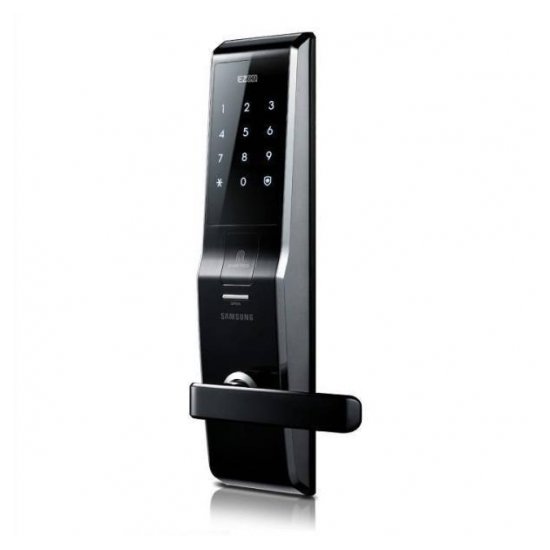 Samsung SHS-H705 FBK/EN - биометрический дверной замок с ручкой (чёрный). Замок врезного типа с надежной задвижкой из многослойной стали. Он устанавливающийся на деревянные и металлические двери. Наличие встроенного биометрического сканера отпечатка пальца. Ввод пароля и с помощью механического ключа. Замок оснащен системой противопожарной безопасности, функцией анти-взлом и анти-панического открытия, защитой от проникновения.