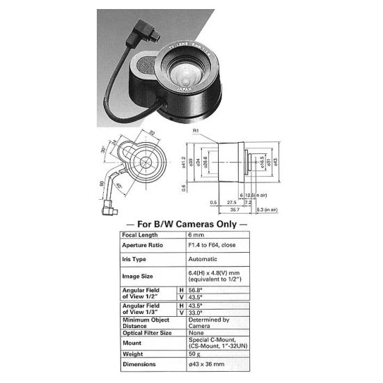 1/3", 2.8-8.0 мм, 99°-35°, F0.95, ASP, CS. Использование объектива с камерой видеонаблюдения, имеющей С-крепление, невозможно.