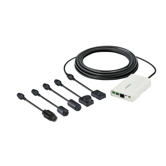 IP-камера состоит из основного блока и выносного видеомодуля, которые соединяются между собой кабелем RJ12. В выносном видеомодуле находится объектив и КМОП-матрица размером 1/2,8 дюйма, а в основном — чипсет для обработки изображения, сетевой интерфейс и другие компоненты камеры. Такое решение позволяет использовать новинку там, где для расположения обычной, цельной камеры не находится места. В качестве выносного блока в камере используется один из четырёх модулей. В модулях SLA-T2480 и SLA-T2480V установлен фиксированный объектив с фокусным расстоянием 2,4 мм, а в модулях SLA-T4680 и SLA-T4680V — 4,6 мм. (пинхол). Подробнее