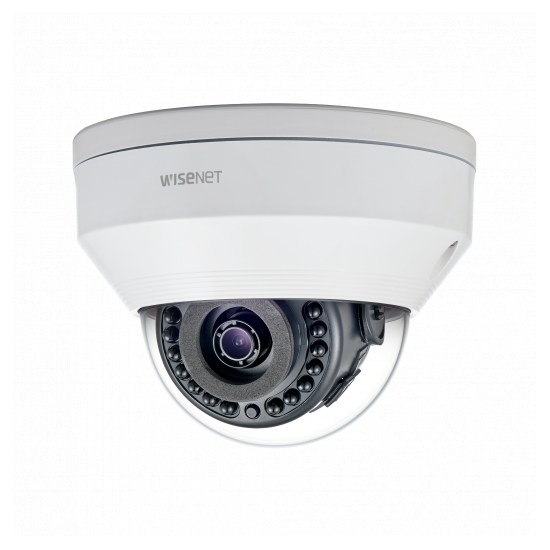 ПодробнееSamsung LNV-6020R - IP-камера 2Мпикс (1984 x 1105), уличная антивандальная купольная с фиксированным объективом f=4 мм, гориз. угол обзора 80°, день/ночь (эл.мех. ИК фильтр), ИК подсветка до 30 м. Матрица 1/2.9" 2.19Mпикс CMOS (2000 x 1121), 30к/сек 2Mпикс., цв. 0,18/ 0лк с ИК подсветкой; H.264, M-JPEG до 3 независимых видео потоков; RJ-45 (10/100); аппаратный WDR 120Дб, шумоподавление SSNR; детектор движения (4 зоны), маскирование (6 зон); встроенная видеоаналитика (детектор внешнего воздействия, детектор расфокусировки). Поддержка WiseStream II; переворот изображения Hallway view (90˚ / 270˚), корректировка искажений LDC (Lens Distortion Correction); слот для карт SD/SDHC/SDXC (32GB): питание PoE (IEEE802.3af, Class3), потребление макс. 6.5W (PoE). Рабочая температура -30°C ~ +55°C. Размер Ø120.3 x 91.7 мм, вес 395 г.