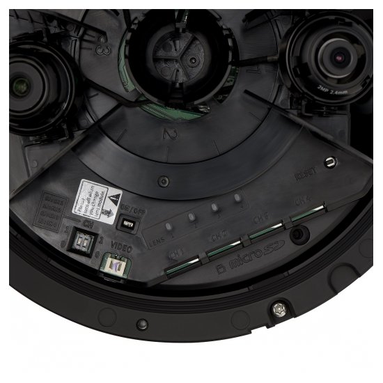 У модели разрешение 20 мегапикселей. Есть четыре 5-мегапиксельных КМОП-матрицы, которые имеют размер 1/1,8 дюйма, оснащены моторизованными вариофокальными объективами с фокусным расстоянием в пределах от 3,6 до 9,4 мм, то есть с оптическим увеличением 2,6х. Искажения, возникающие по краям изображения, устраняются в обеих камерах с помощью функции Lens Distortion Correction. При установке камерные блоки можно повернуть, перемещая по направляющей. Они могут смотреть в четырёх направлениях. От каждого из камерных блоков одной камеры может передаваться до трёх потоков, настраиваемых индивидуально, с частотой 30 к/с. Для сжатия изображения используются кодеки H.265, H.264, MJPEG и технология WiseStream II... Подробнее