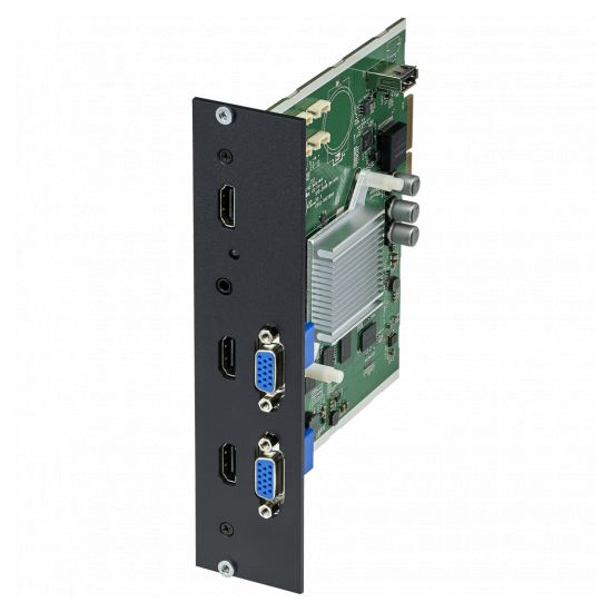 Дополнительный модуль для подключения двух мониторов к контроллеру видеостены SPD-1660RP; входы: 2 HDMI (1 — 4K, 1 — 1080p), 2 VGA (1080p); выход: HDMI (1920x1080 @60 Hz, 1280x720 @60 Hz); H.265 / H.264 / MJPEG; поддерживает разрешения 12MP (4000x3000), 8MP (4096x2160), 5M (2592 x 1944), 3M (2048 x 1536), 2M (1920 x 1080, 1600 x 1200), 1.3M and below (1280 x 1024, 1280 x 960, 1280 x 720, 800 x 600, 720 x 576 704 x 576, 640 x 480, 640 x 360, 352 x 288, 320 x 240, 320 x 180, 176 x 144) Hallway mode (1080 x 1920, 720 x 1280); звук: G.711, G.726, AAC.