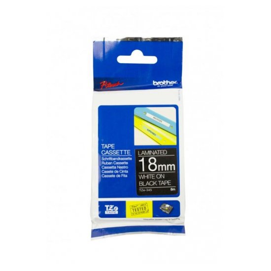 Лента Brother TZ-345 для термопринтера, белый шрифт на черном фоне, ширина 18мм, длина 8м