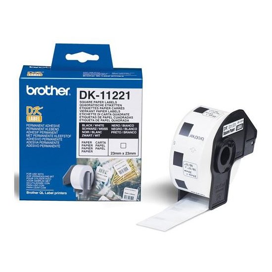 Квадратные наклейки Brother DK-11221 (23 х 23 мм), 1000 шт. в рулоне. Предназначены для принтеров Brother.