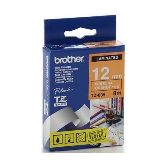 Ламинированная лента для печати наклеек, белый на жёлтом фоне, 12мм х 8м.