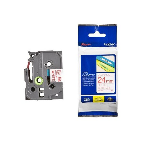 Ламинированная клеящаяся лента Brother TZe-252 (24 мм) красного цвета на белом фоне для принтеров Brother P-Touch. Подробнее