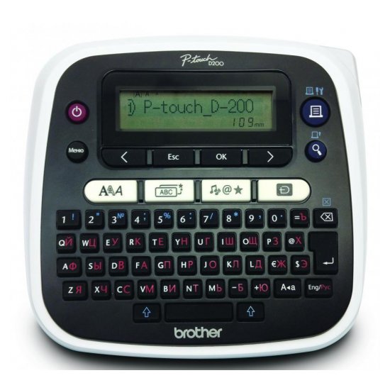 | Комплект поставки | Устройство PT-D200 ; Кейс для переноски; Лента 12 мм x 4 м (чёрная печать на белом фоне); Руководство пользователя; Гарантийный талон |